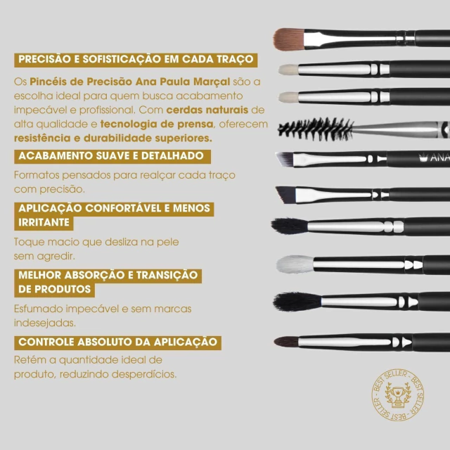O Pincel de Precisão 03 Ana Paula Marçal é essencial para um esfumado impecável. Com cerdas naturais e design robusto, proporciona um acabamento profissional e é sinônimo de qualidade e durabilidade.